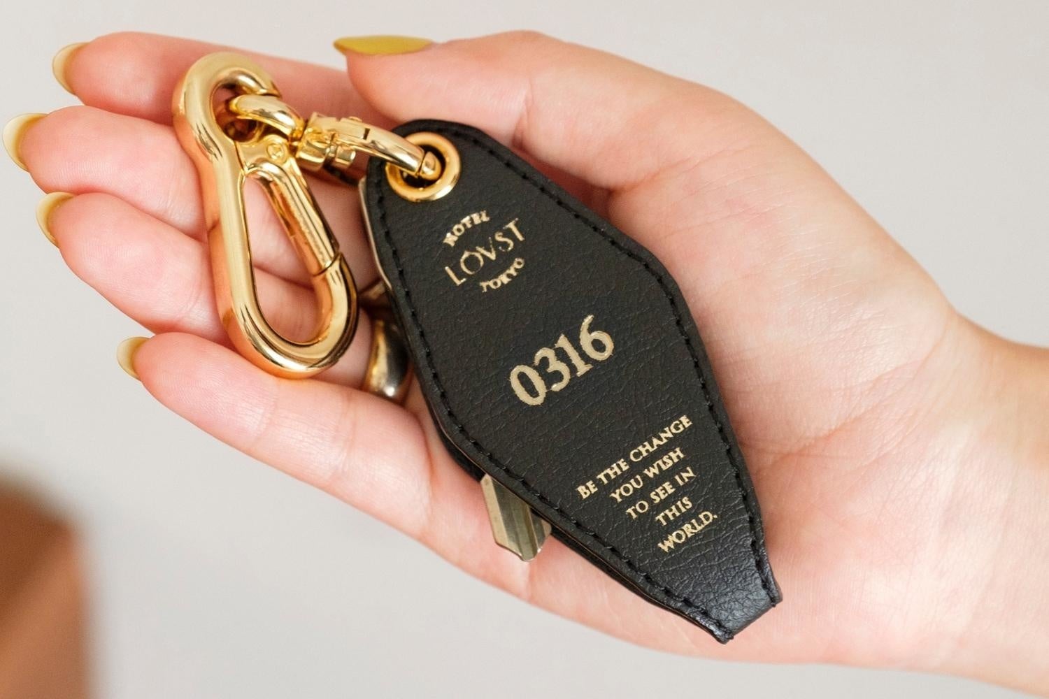 ホテルのルームキーをイメージした「Apple Room Key」は、廃棄りんご由来の「アップルレザー」を使用。