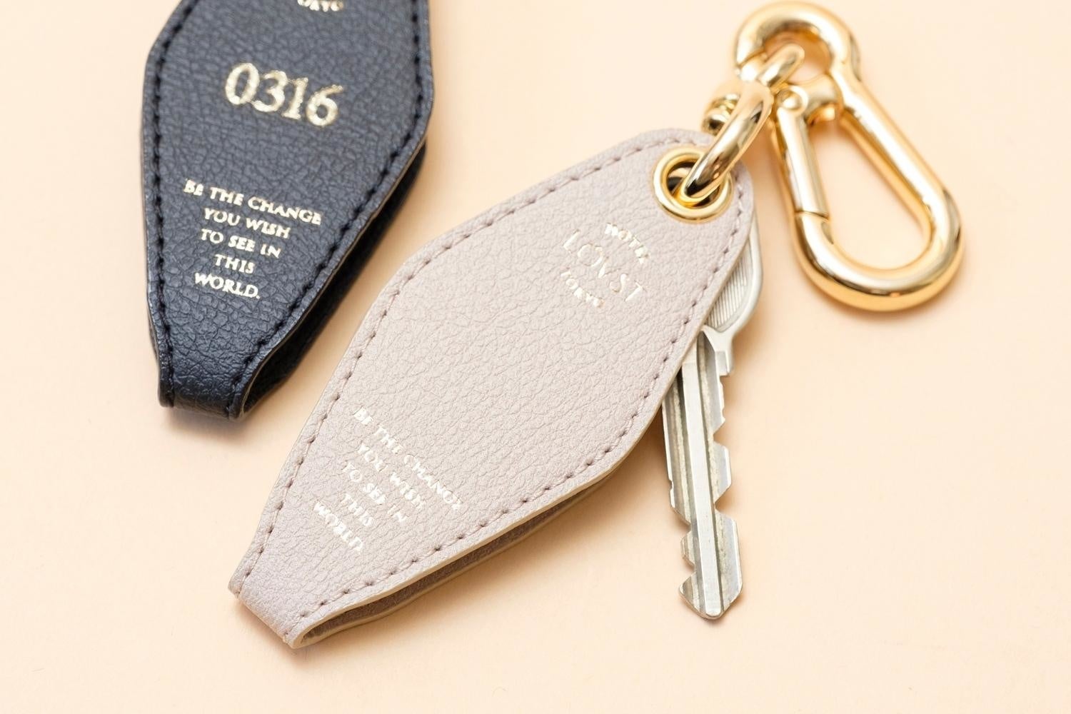 「Apple Room Key」の特長は、レザーカバーの中に鍵を収納できる機能的なデザイン。鍵同士が触れ合う金属音を抑え、スマートに持ち運ぶことができます。また、キーホルダーの表面には、「Be the change you wish to see in this world.」のメッセージを刻印。「より良い世界をつくっていくために、一人ひとりに一歩を踏み出してほしい」というブランドの想いが込められています。