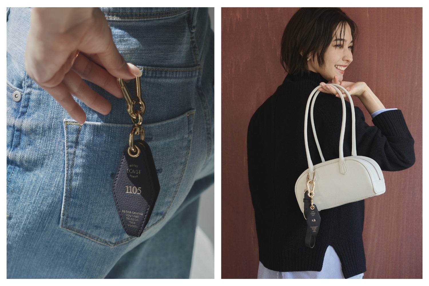 中でも、「Apple Room Key(アップルルームキー)」と「Apple 2Way Half-moon Strap(アップルツーウェイハーフムーンストラップ)」は、大注目の刻印対応アイテム。バッグチャームとして取り入れれば、いつものバッグをトレンド感のある新鮮なスタイルへとアップデートしていただけます。